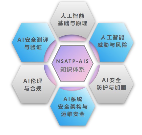 NSATP-AIS是由信息产业信息安全测评中心推出的针对人工智能安全方向的专业认证培训。该认证培训面向人工智能快速规模化应用背景下日益突出的数据安全、模型安全、算法可信、系统架构安全以及伦理合规等综合性风险问题,聚焦人工智能系统“数据采集—模型训练—算法推理—业务部署—持续运维”全生命周期安全保障能力建设,系统培养既具备人工智能技术认知,又掌握网络与信息安全专业方法论的复合型安全技术与管理人才。NSATP-AIS以国家人工智能安全战略、网络安全与数据安全相关法律法规及行业标准为指引,对标国际主流AI风险管理与治理框架,构建覆盖技术防护、风险评估、合规治理与安全测评的系统化课程体系,推动人工智能安全能力从“被动防御”向“体系化治理”转型升级。